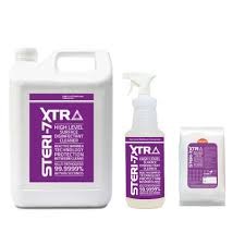 STERI-7 XTRA is a one stage High-Level Multi-surface Disinfectant Cleaner. It effectively kills bacteria, viruses, fungi, spores and moulds up to 99.9999% on a surface or material. and has been tested against feline coronavirus; a surrogate of Coronavirus. STERI-7 XTRA is ideal cleaning solution that it keeps treated areas contamination free between cleaning cycles.