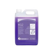 KG2 Cleaner & Sanitiser is a highly effective, dual-action cleaning and sanitizing solution designed for use in the food and catering industry. Its powerful formula removes general soiling and kills bacteria in one application, helping to prevent the spread of contamination. KG2 is ideal for use on all food contact surfaces, including worktops, chopping boards,